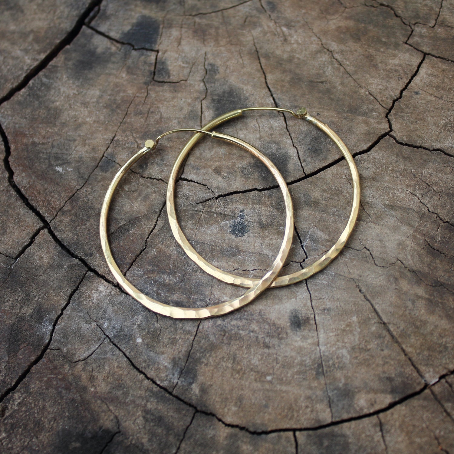 ar de Aros dorados hechos a mano con textura martillada y de diferentes tamaños.