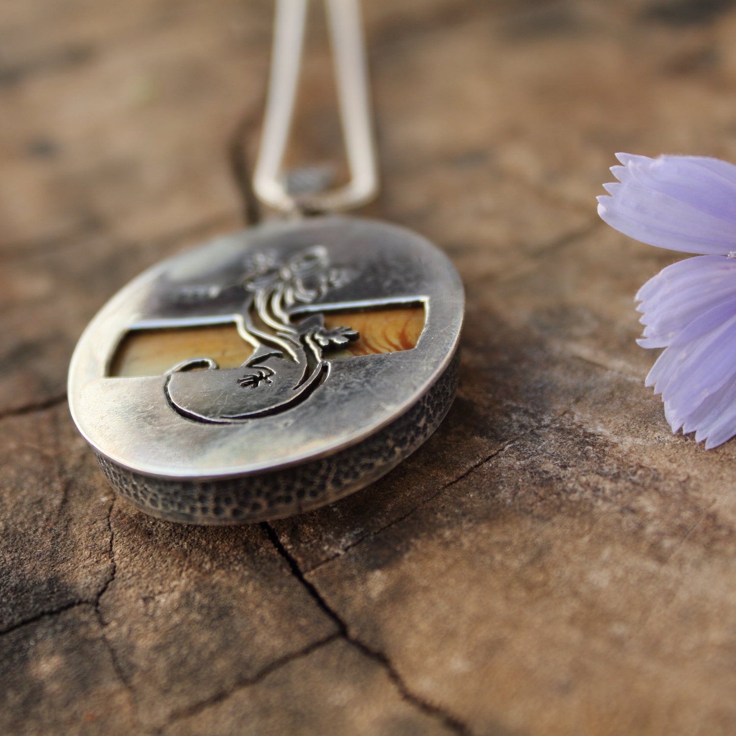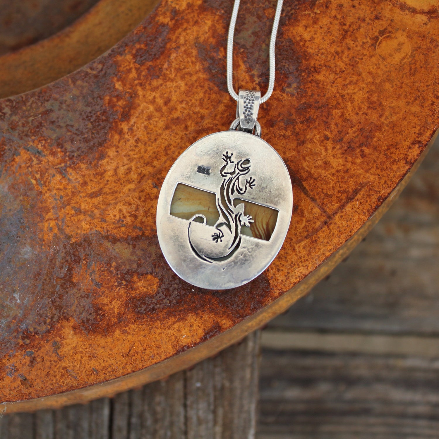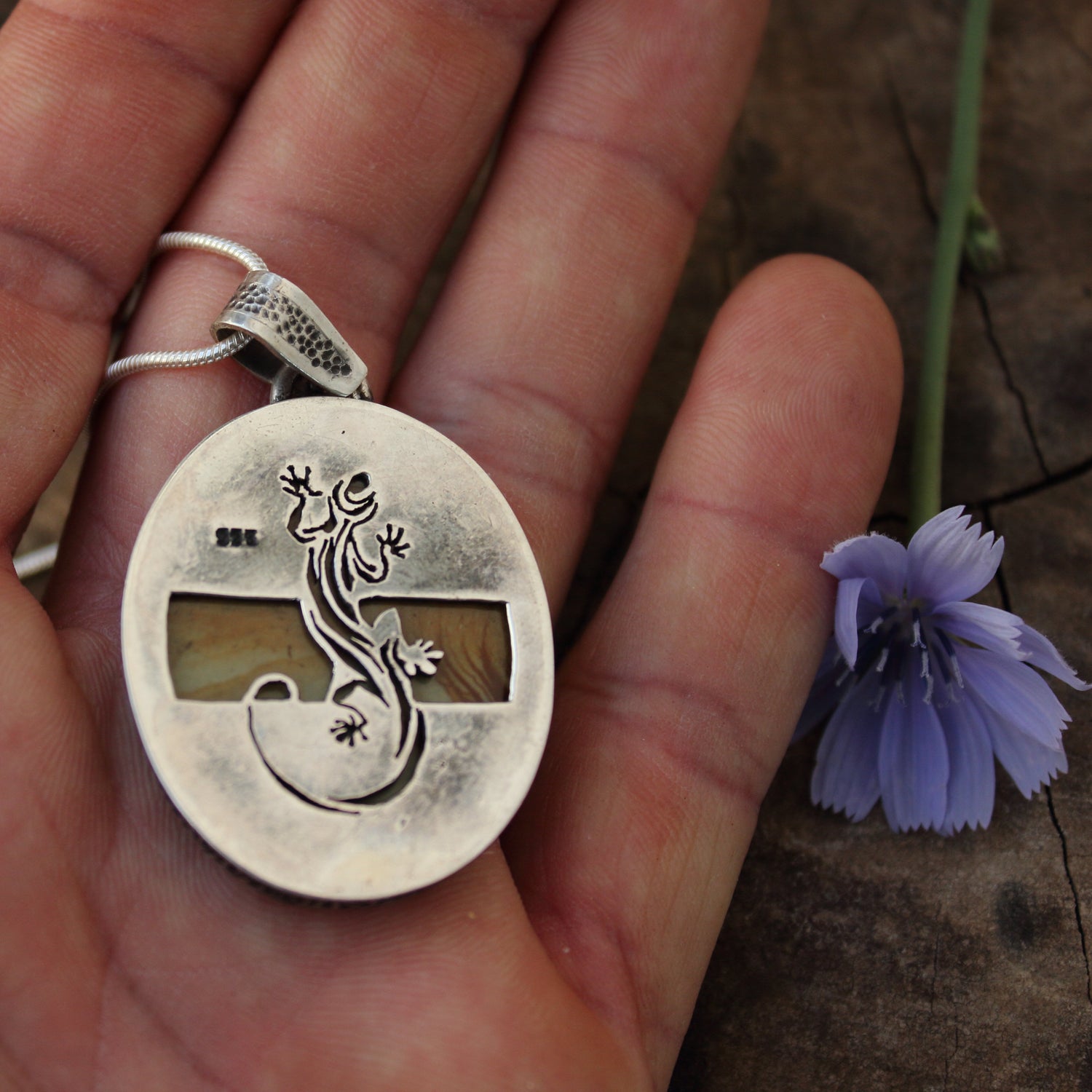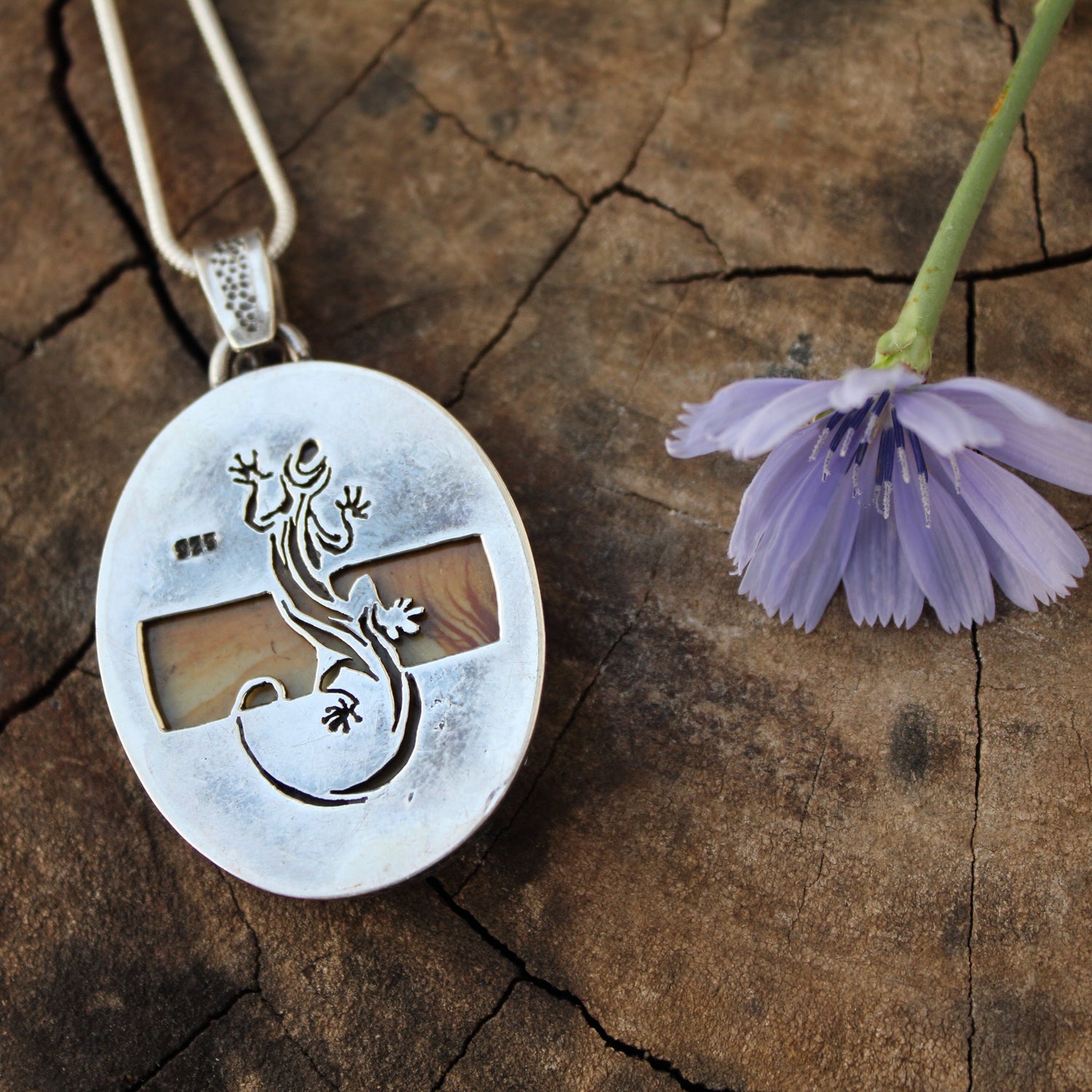 Colgante Samsonite Oval y Plata de Ley con Salamandra calada
