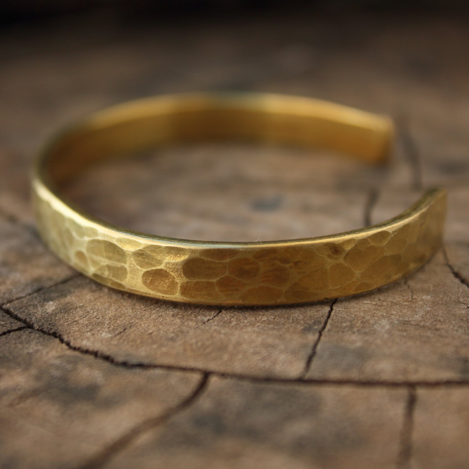 Pulsera ovalada de latón macizo martillada.